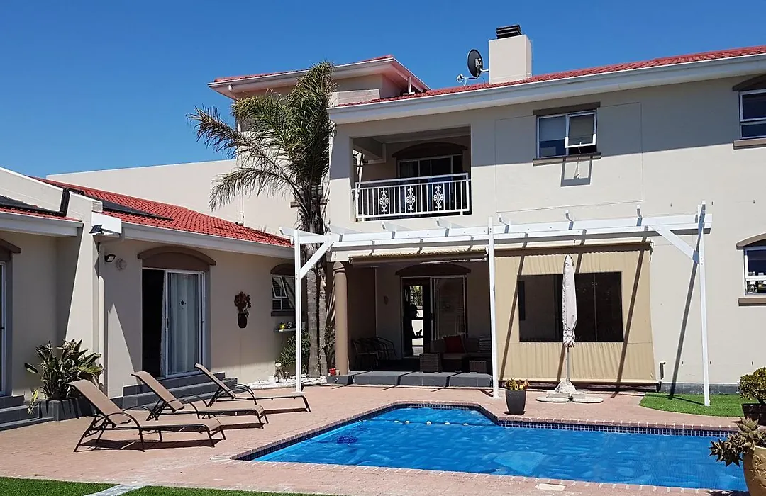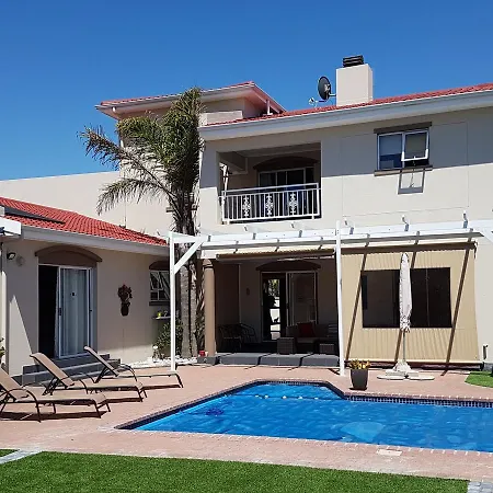 Die 7-Zimmer- Villa Carmel Huys Kapstadt mit Blick auf die Terrasse liegt am Strand von Kapstadt und bietet einen Swimmingpool, in dem sich Gäste entspannen können. Die Villa in Kapstadt verfügt über eine Terrasse mit einem Swimmingpool und bietet einen Blick auf den Pool.